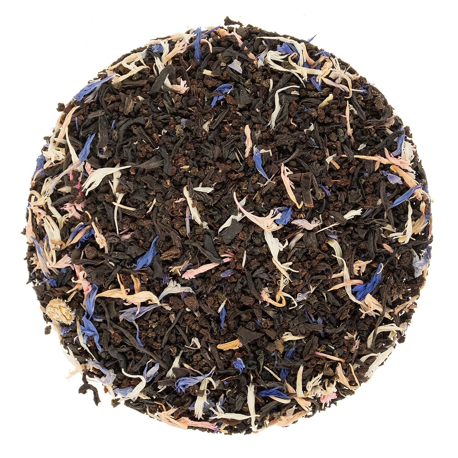 What's In your cup? Black tea, Green tea, Cornflowers.