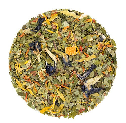 To create this energizing blend, we've carefully selected a powerful mix of herbs and fruits known for their stamina-boosting properties and uplifting wellness benefits. Our blend features moringa, a nutrient-rich herb celebrated for its antioxidants and ability to support healthy blood pressure while delivering a refreshing dose of Vitamin C. We also include mate, South America’s renowned herbal powerhouse, rich in mateine—a dynamic trio of caffeine, theobromine, and theophylline—valued for its invigorating effects. A vibrant burst of cinnamon and zesty orange citrus brightens the blend, alongside a variety of nutrient-dense leaves and flowers, including blue pea flower, which is believed to enhance both brain function and physical endurance. This delightful twist of citrus not only awakens the taste buds but also energizes the mind, inspiring you to tackle whatever comes your way.