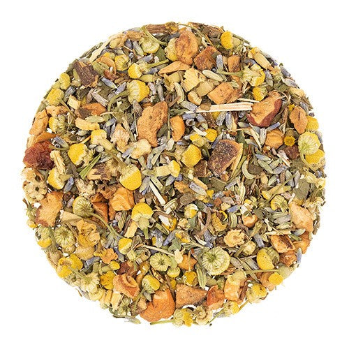 What's In your cup? Apple, Lavender, Camomile, St. John's wort, Lemon balm, Licorice, Fennel, Peppermint, Valerian, Natural flavors (organic compliant).